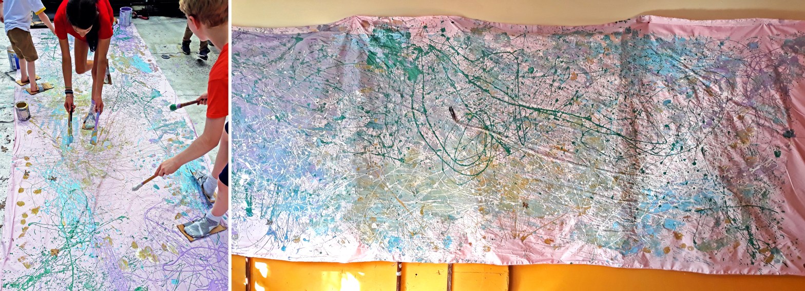 Bu hafta bu sunumu hazırlarken, (Fotoğraftan bir çocuğu göstererek) bu çocuğun adı Shaylem, benden bir şey yapmamı istedi. 5 ay önce bir pazartesi günü canı sıkılmıştı. Ben de ona yapabileceği bir şeyler önermiştim. Yanlış anlaşılmaya yer vermemek için söylüyorum, ben Shaylem’ı üç yıldır tanıyorum ve ilgi alanlarını epey biliyorum. Ve ona bir sanat tarihi dersi önerdim. Bu benim konvansiyonel bir öğretmen olarak çalıştığım yıllarda verdiğim bir dersti. O bu fikri sevdi ve birlikte böyle bir sınıf açmaya karar verdik. Ve böylece çalıştığım merkezdeki çocuklara sanat tarihi dersine katılmakla ilgilenen kimse var mı diye sormaya başladık. Beş kadar çocuk katılmak istedi. Biri 5 yaşında, ikisi yedi yaşında ve biri 11 biri de 12 yaşında. Her pazartesi kütüphane buluştuk. Mağara resimleriyle başlayan bir sanat tarihi dersine başladık, yola devam ettik ve bu pazartesi soyut ekspresyonizme kadar geldik. Ben ressam Jackson Pollock’tan bahsettim. Ve onun boyaları sıçratarak resim yaptığı videoları izlemeye başladık ve çocuklar bundan çok heyecanlandı. Çalıştığım merkezin hemen yanında bir boya dükkanı olduğunu hatırladım, onlar bazen bize bedava boya kovaları veriyorlardı. Çocuklara bir gidip bize boya verip veremeyeceklerini sormayı önerdim. Çok büyük bir kumaş parçası bulduk. Ve New York şehrindeki bir çatıya çıktık, boya kovalarını açtımnve ortaya bu (resmi göstererek) çıktı. Pazartesi günü bunu yarattılar. Merkezde bulunan ama sanat tarihi dersini almayan bir sürü çocuk kafasını pencereden çıkarıp “hey biz de boyayabilir miyiz” diye sordular. Ve böylece hepsi bize yardım etmeye başladılar. Kısa bir süre içinde çatıda bir sürü çocukla birlikteydim. İçeri girmek istediklerinde ayakkabılarının altında boyalar vardı ve bende ayaklarının altına kartonlar bantladım ve eğlenmelerine izin verdim. Ve orada durup çocuklar birbirleriyle konuşurken dinledim. Sanat tarihi dersi alanlar almayanlara bazı açıklamalar yapıyorlardı. “Bu Jackson Pollock tarzı bir soyut ekspresyonizm çalışması” diyorlardı. Size garanti ederim bu çocukların yarısı ne Jackson Pollock ismini ne de soyut ekspresyonizmin ne olduğunu hatırlamayacaklar. Ama bir dahaki sefere müzeye gittiklerinde, bir soyut ekspresyonizm örneği gördüklerinde bunu çok güzel anlayacaklar. Bitirecek olursak, bu sadece bir örnek, bu eğitim yönteminde çok çok farklı yöntemler var. Benim çocuklarım doğduklarından bu yana bu yöntemle büyüdüler. Evet okumayı yazmayı ve temel matematiği biliyorlar. Nasıl öğrendiler hiç bir fikrim yok! Çok teşekkürler.